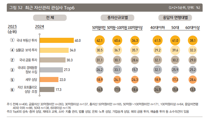 부자들의 자산관리 관심사는 다음과 같습니다.