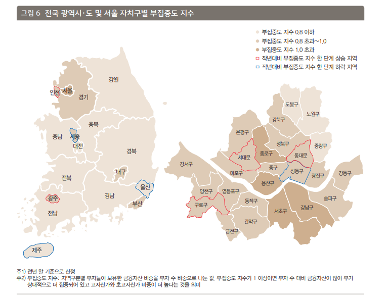 서울 내에서는 강남/서초/종로/용산의 부집중도가 두드러졌습니다.