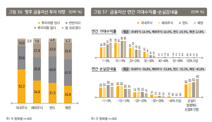 특히 주식과 예적금은 자금 추가/회수가 의견이 엇갈린다고 하네요.