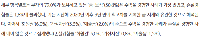 특히 부자의 79%는 금이나 보석을 보유하고 있어 수익 경험이 많다고 합니다.