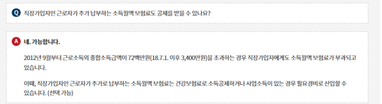 Q)근로자가 추가 납부하는 소득월액 보험료도 공제 가능?