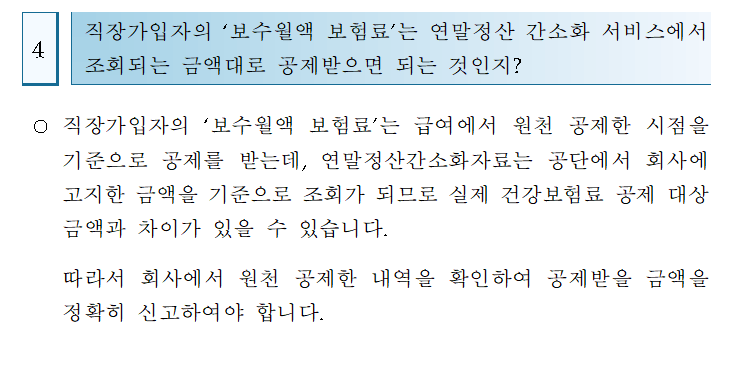 Q) 보수월액 보험료, 연말정산간소화에서 금액대로 공제?