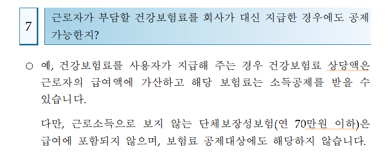 Q) 근로자가 부담할 건강보험료를 회사가 지급한 경우 공제 가능?