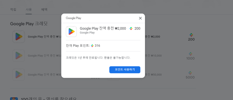 이상, 구글플레이 포인트 및 크레딧 사용방법,
