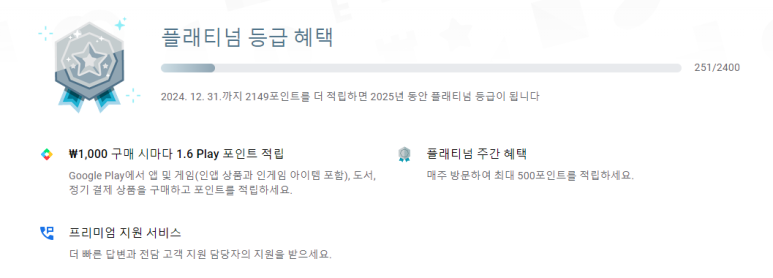 자료 : 구글플레이 홈페이지(플래티넘 등급 혜택)