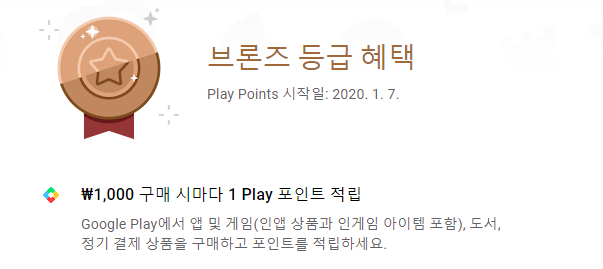 자료 : 구글플레이 홈페이지(브론즈 등급 혜택)