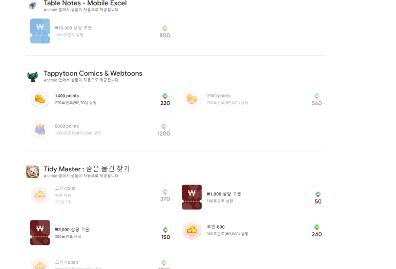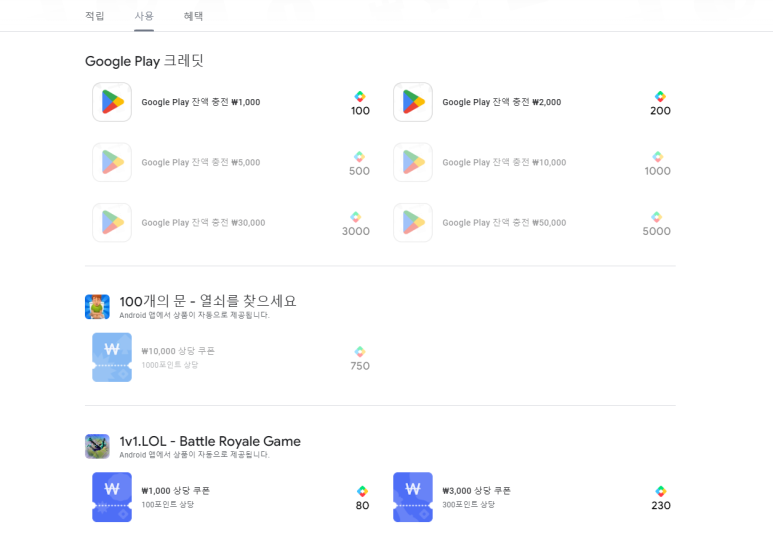 구글 포인트는 구매가 불가능하며 현금으로 전환할 수 없으며,