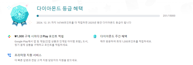자료 : 구글플레이 홈페이지(다이아몬드 등급 혜택)