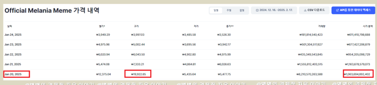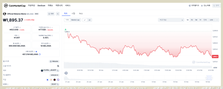 이상, 멜라니아(MELANIA) 밈 코인 시세 가격,