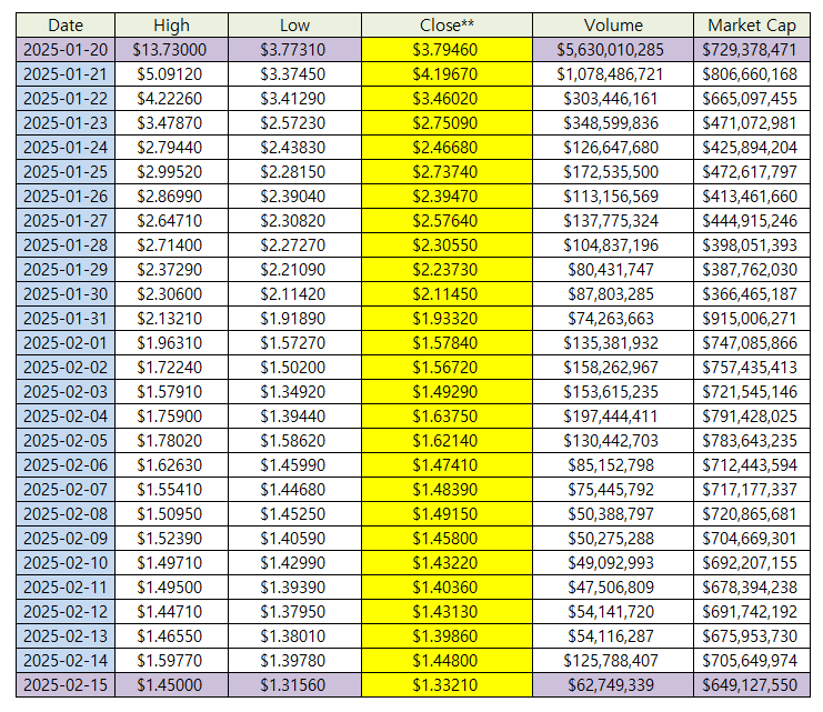 코인마켓캡(멜리니아 밈 상장 후 트럼프코인 시세)