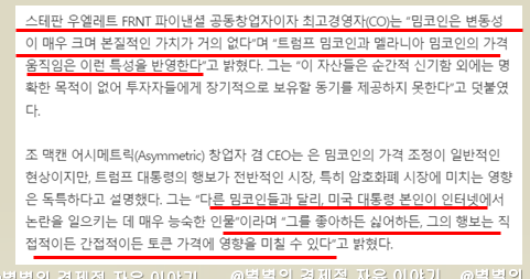 "그의 행보가 직접적이든 간접적이든 토큰 가격에 영향을 미칠 수 있다"고 하네요.