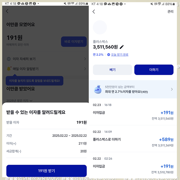 케이뱅크 플러스박스로 하루 이자 입금(받기하면 바로 입금됨)