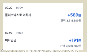 입금 했던 3,510,589원에 대한 이자가 입금되었습니다.