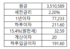 =211원이 하루 세전이자입니다.