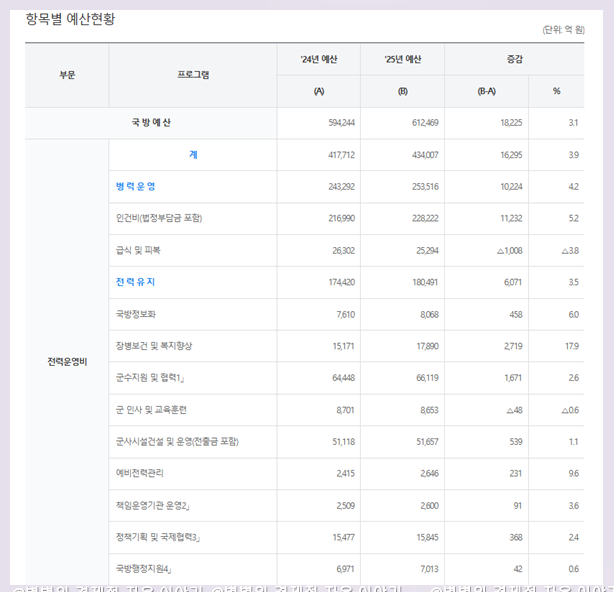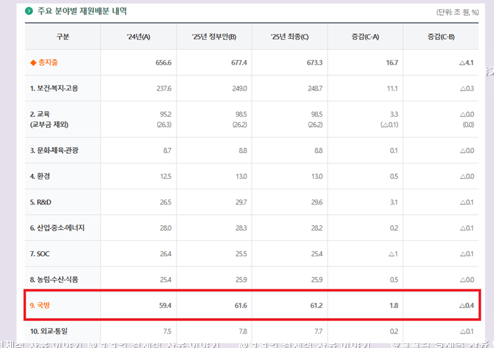 2025년 국방비 : 61조 2469억원