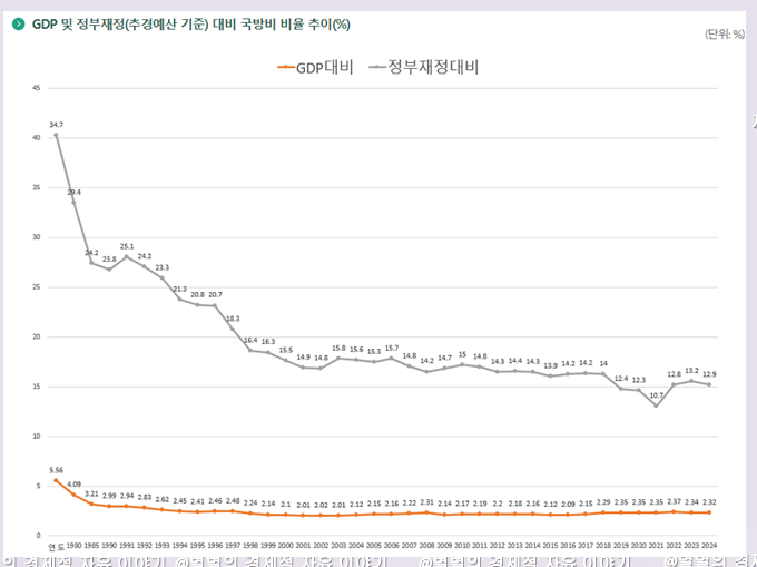 국방비율 추이를 보면 직관적으로 이를 알 수 있습니다