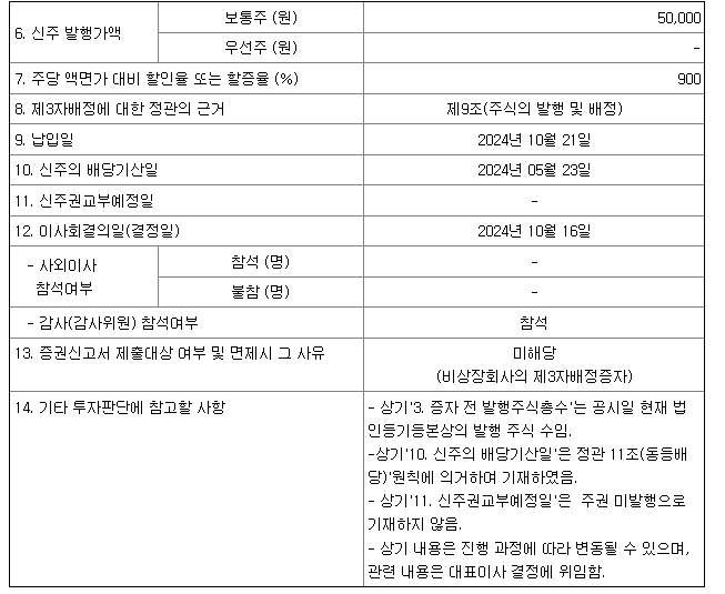 위 유상증자 결정 공시(제3자 배정증자)에서