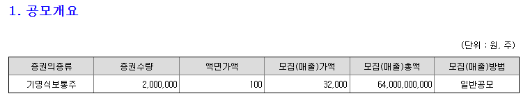 공모자금은 공모가 하단 기준으로 32,000원 * 200만주 = 640억원입니다.