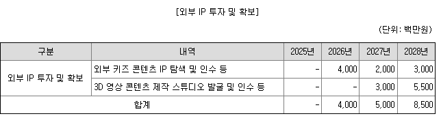 3D 영상 콘텐츠 제작 스튜디오 발굴과 인수에 85억원이 사용될 예정입니다.
