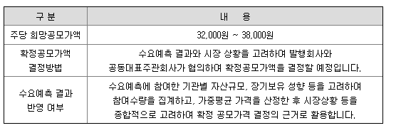 공모가 10주* 32,000~38,000원(공모가 희망밴드)