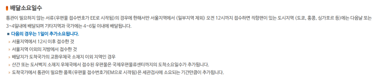 EMS 국제특급우편물 배달소요일수 보통 3~4일, 멀면 4~6일 소요