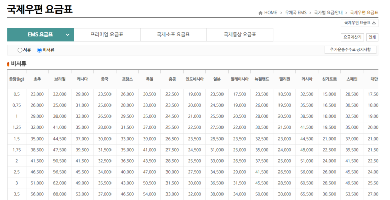 국제소포 가격요금조회를 해볼 수 있습니다.