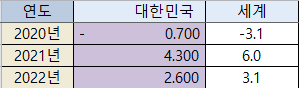 세계 경제성장률과 대한민국 경제성장률로 놓고