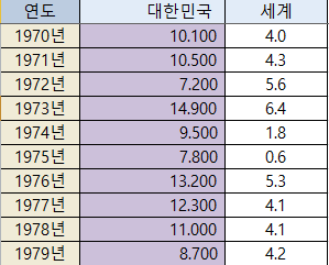 1970년대 우리나라 경제성장률 평균 : 10.52%