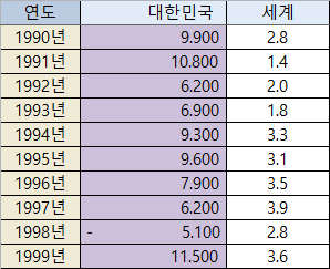 1990년 대한민국 경제성장률 : 9.9%