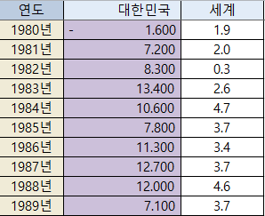 1980년대 우리나라 경제성장률 평균 : 8.88%