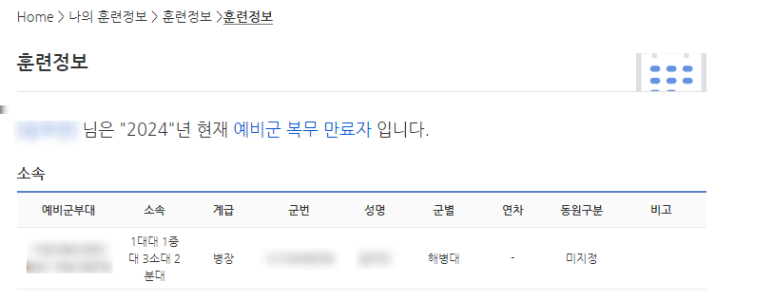 훈련정보에 '예비군 복무 만료자'라고 표시가 되네요.