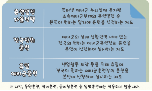 인터넷을 통해 예비군 스스로 훈련일정을 확인, 선택하여 훈련에 참석할 수 있도록 하는 제도