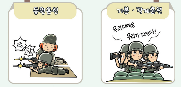 -동원훈련 : 현역부대에 입영하여 전시 임무수행 절차를 숙달하는 훈련