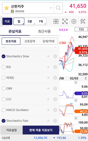 네이버 금융차트에서도 Slow STC/Fast STC를 확인할 수 있습니다.