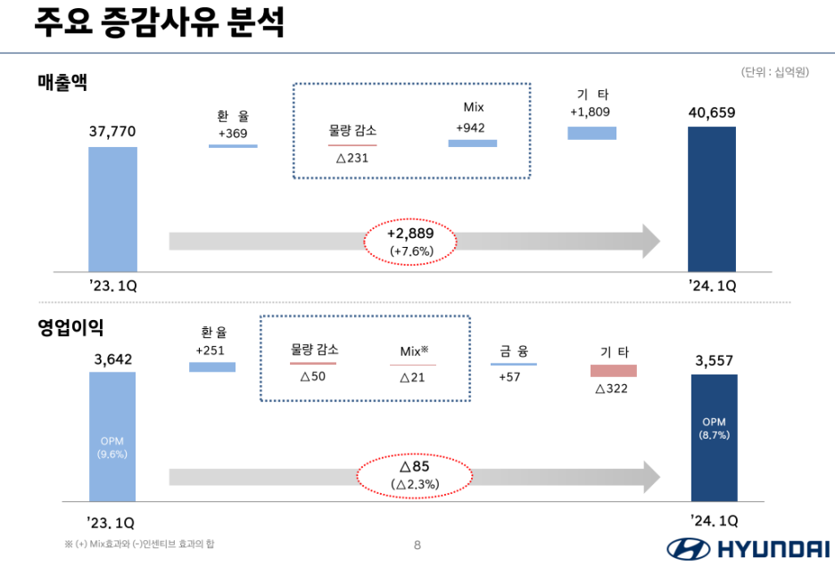 22년 현대자동차 영업이익이 9조 8,1989억원으로
