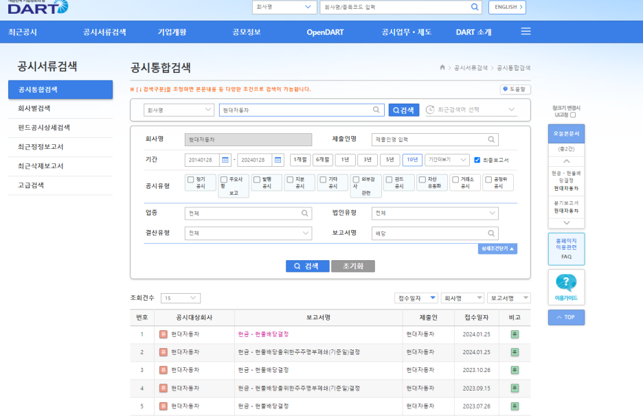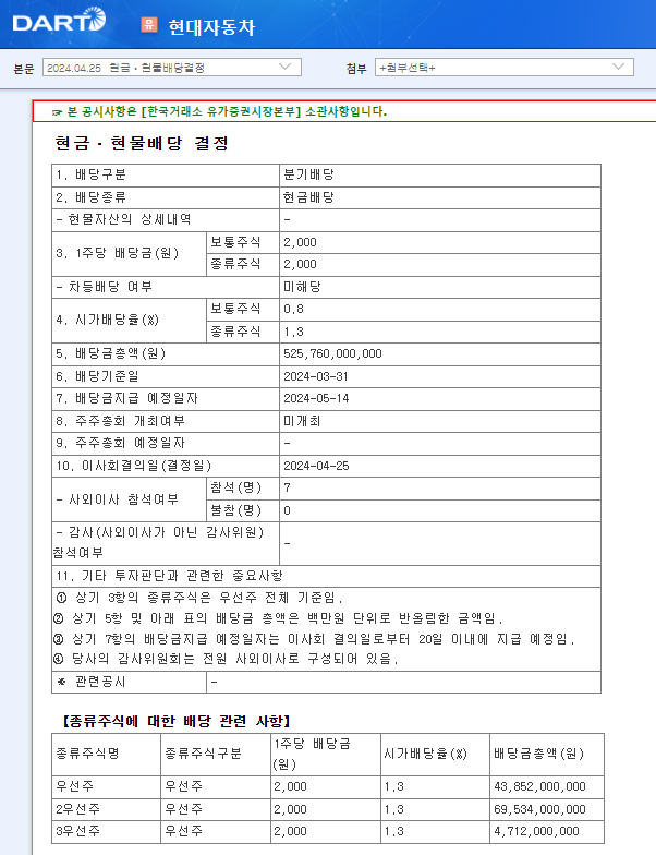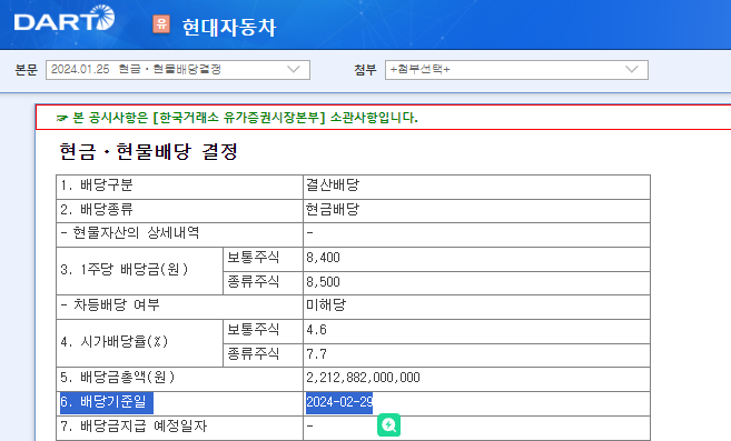 전자공시시스템에서 현대차 배당금을 검색할 수 있습니다.