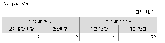 최근 5년간 평균배당수익률은 3.3%입니다.