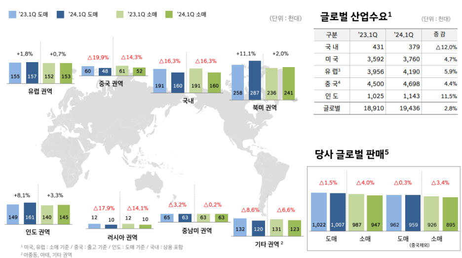 24년도 1분기 글로벌 산업수요가 모두 증가했습니다.