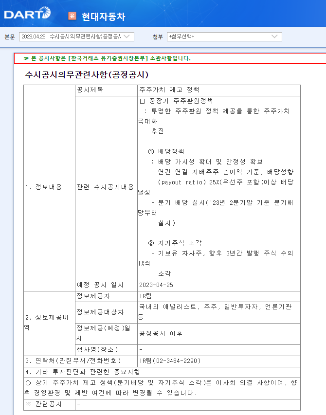 그리고 공정공시를 통해 주주가치 제고정책을 알렸는데요.