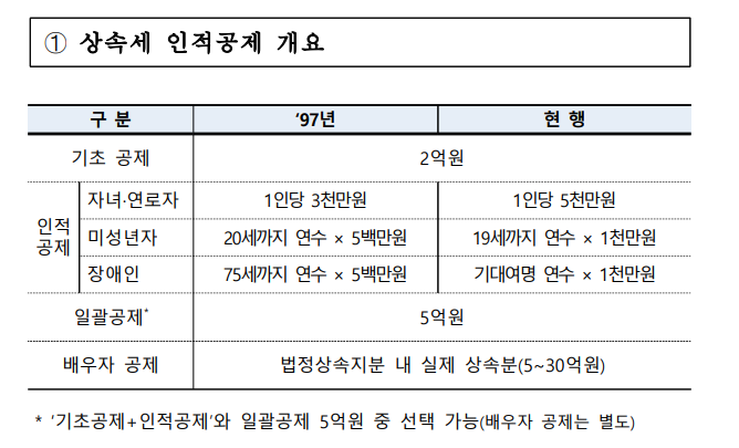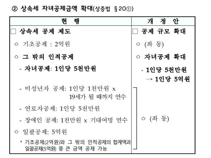 상속세 자녀공제 금액 확대도
