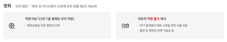 영화티켓(23년 7월분부터 적용), 신문구독료로 사용한 금액에 대해서