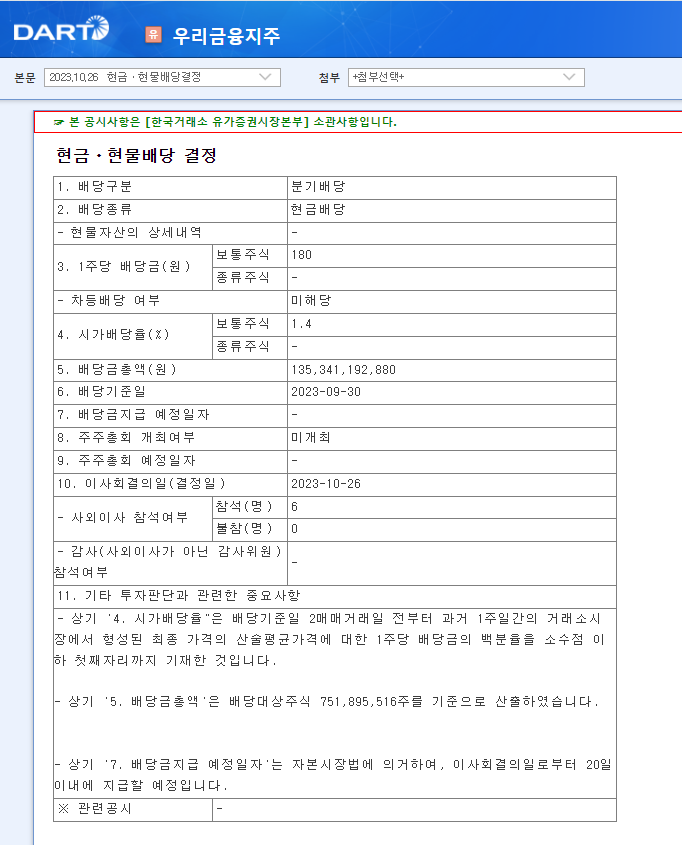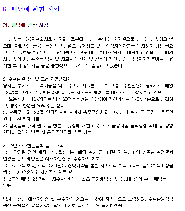 우리금융지주의 배당정책을 보러 가야겠습니다.