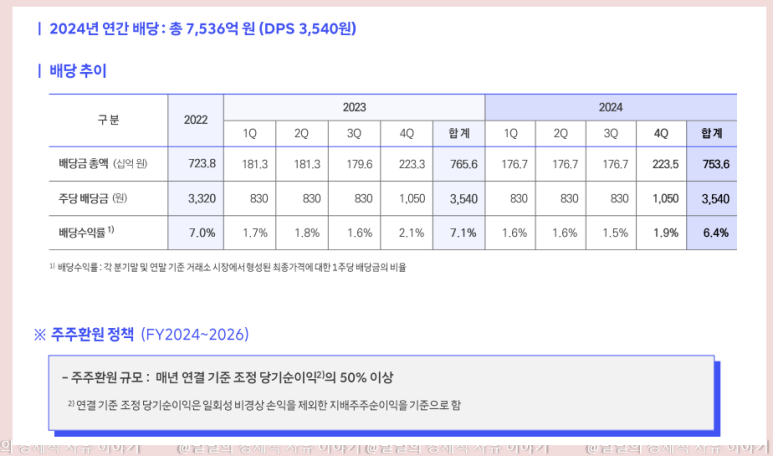 -> 2024년 배당금 합 : 3,540원(시가배당율 합 : 6.5%)