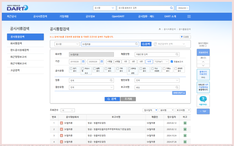 전자공시시스템(DART) SK텔레콤 배당 확인 방법