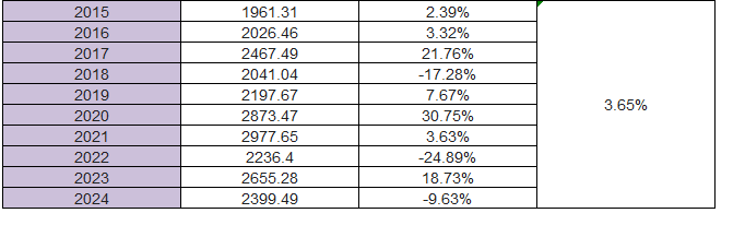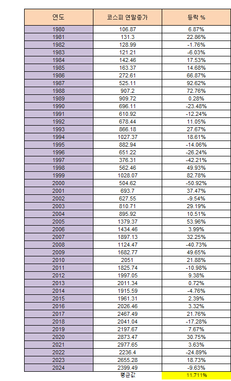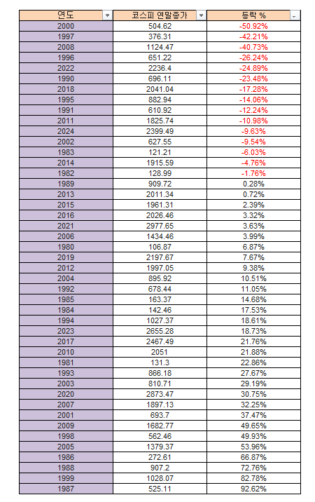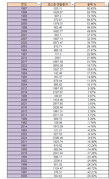 *해당 지수 등락률은 단순 연도별 코스피 종가 기준이기 때문에