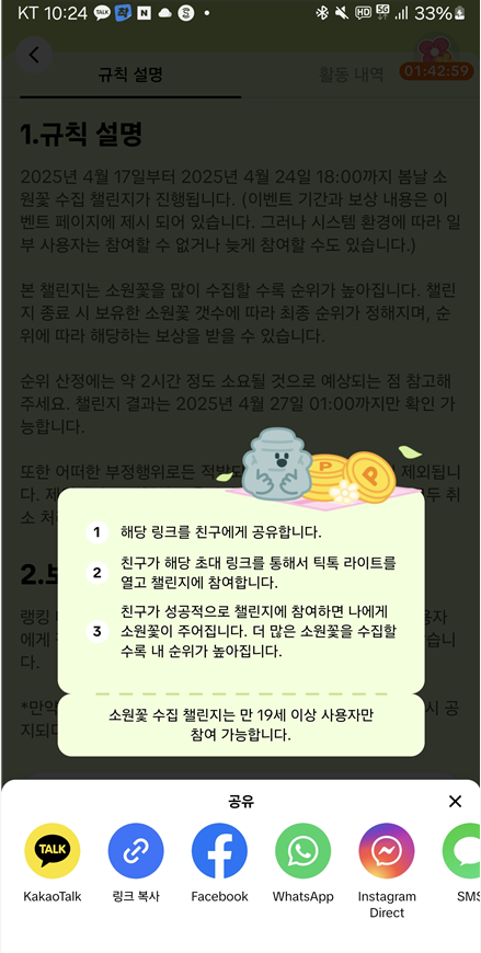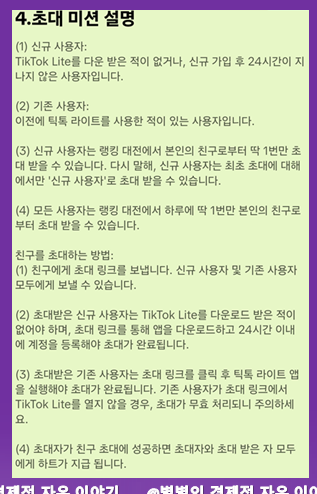 틱톡라이트 앱 : 소원꽃 초대미션 설명