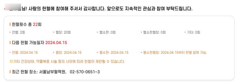 저는 이전에 헌혈을 총 22번 진행했던 이력이 있습니다.