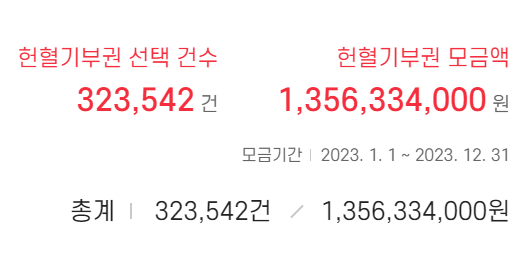자료 : 대한적십자사 홈페이지(헌혈기부권 2023년 현황)