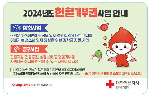대한적십자사 혈액관리본부에서는 '헌혈 기부권사업'을 진행중에 있습니다.