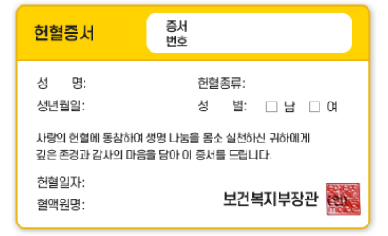 자료 : 대한적십자사 홈페이지(헌혈증서 예시)